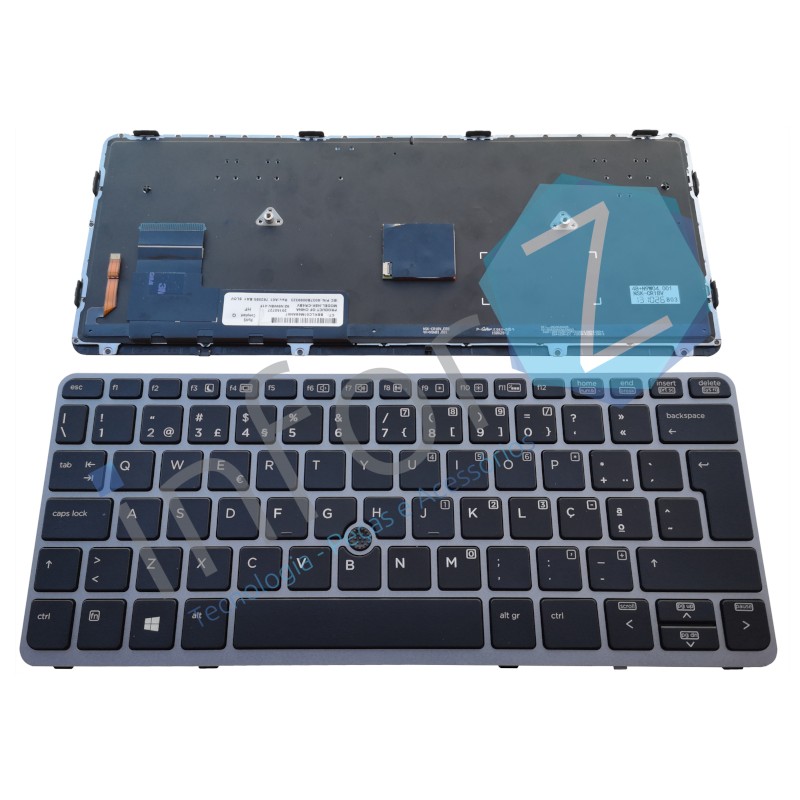 Teclado HP EliteBook 820 G1 | 820 G2 |725 G2 Track Stick Retroiluminado - Moldura Cinza